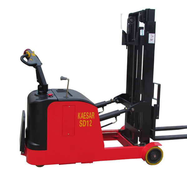 半電動(dòng)堆高車的載貨上升下降是靠電力驅(qū)動(dòng)提升,而行走、轉(zhuǎn)向都是靠人力操作。