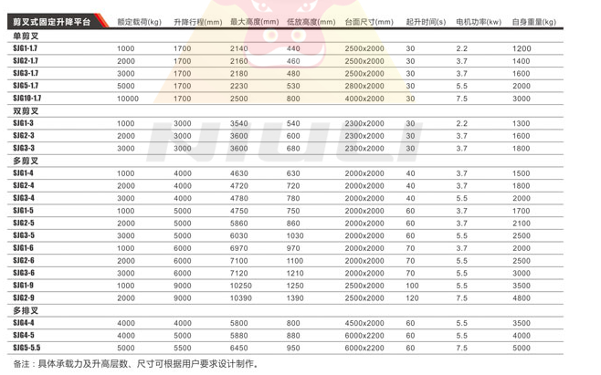 SJY0.3-12m剪叉式液壓升降平臺技術(shù)參數(shù):