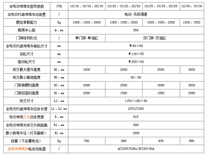 CTQ全電動堆高車技術參數(shù):